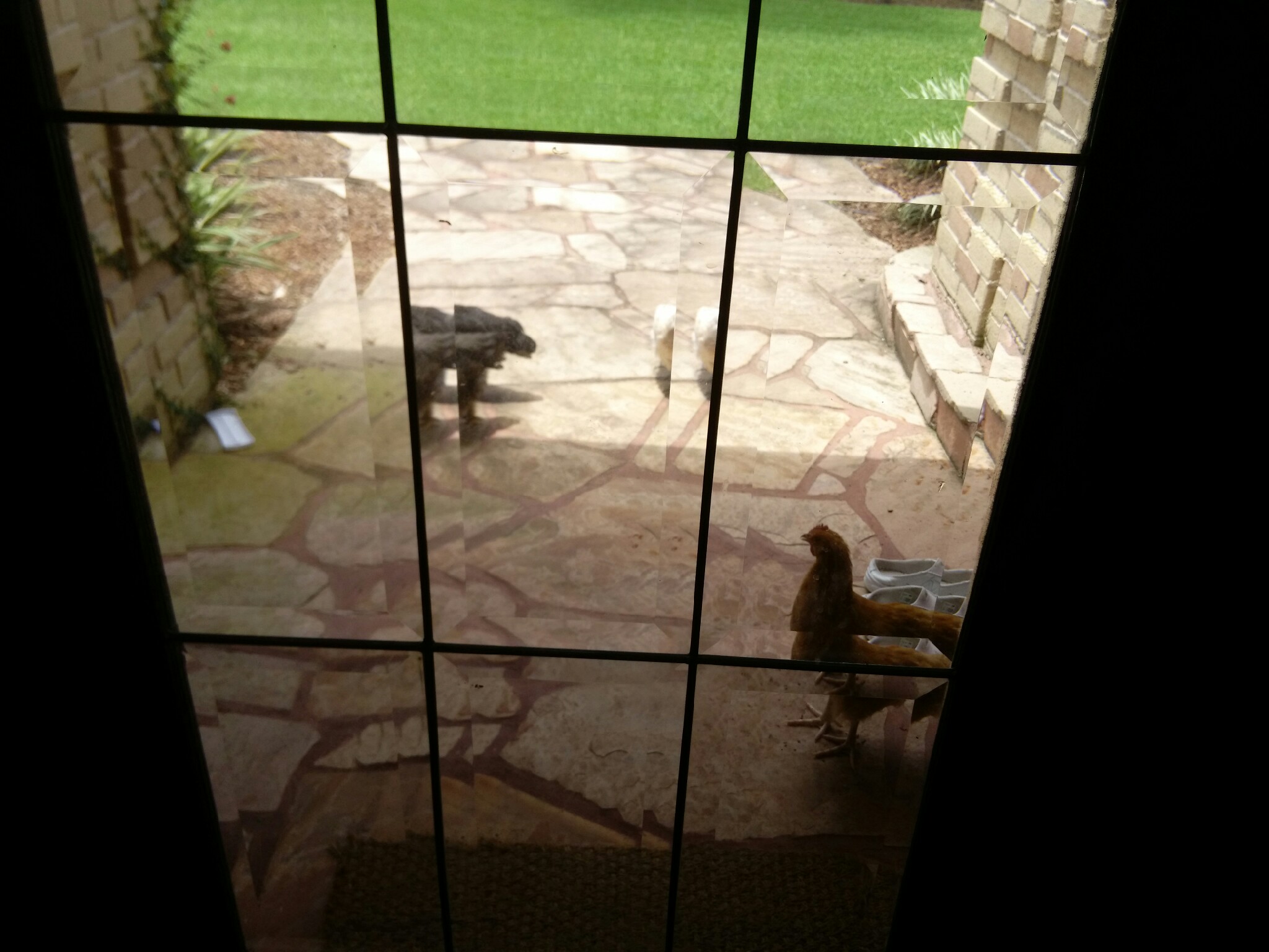 Adam can ramble at length to our chickens about the latest book he’s been reading or a new discovery he made in Minecraft, and those ladies are going to listen. When I occasionally send Adam out of a room because he’s starting to get hysterical over something, I often find him cuddling a chicken outside a few minutes later. But it’s not a one-sided relationship – among the many facts lodged in his brain, Adam also knows each chicken’s favorite treat, down to “piece of banana rolled in chick starter” versus “small pieces of grass and sunflower seeds.” Adam and the girls can often be found hanging out in the driveway, on the kids’ roller coaster, or even huddled under a bush in the garden, with Hank or Buffy sitting in his lap while he keeps count. “Hank sat in my lap for 181 seconds today! That’s a 40 second increase from last time!” Adam will excitedly exclaim upon coming inside. Several times a day, the chickens come right to the front door and peer inside, as if they’re waiting for attention (or food). Most of the time, Adam is the one happy to provide both.